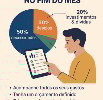 Dica extra: Utilize o método 50/30/20 para equilibrar sua renda entre necessidades, desejos e investimentos. Isso evita surpresas desagradáveis.
